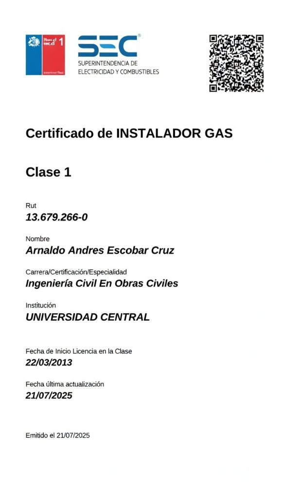 Contamos con certificación SEC, garantizando que todos nuestros trabajos cumplen con la normativa legal y técnica exigida en Chile.